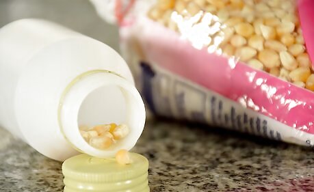 Add some noisemakers to the bottle. Use anything from beans to corn kernels to create rattling sound as your kitten bats the bottle across the room. While most pill bottles will have childproof (and kitten proof) lids, it's always a good idea to fill the bottle with edible items just in case your kitten manages to open it.