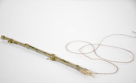 Find a sturdy stick or dowel. Usually your feather toy won't require a stick longer than two feet, but depending on your height you may want to select a stick that's a bit longer. As for thickness, you should try to find a stick that's around a half inch in diameter—any slimmer and it might snap while your kitten is playing with it.