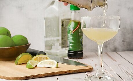 Mix up a low-carb margarita. Classic margaritas usually contain simple syrup or triple sec, which are sugary additions. To cut back on the carbs, combine 2 ounces of tequila, 1 ounce of lime juice, and 1 tablespoon of zero-calorie sweetener or orange extract in a cocktail shaker with ice. Shake it till it's cold, then pour the mixture through a fine strainer into a margarita glass.