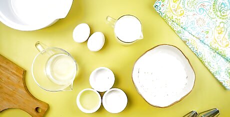 Add flour, eggs, milk, water, and salt in a bowl and mix with a hand mixer until there is no clumped batter.