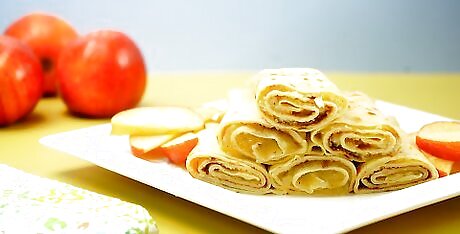 Serve warm and add filling of your choice. Depending on the filling, they can be served immediately. However, if using cheese filling, fry them up in butter to get the outside crispy and to melt the cheese. For jam or apple sauce, roll them up and end any filling with a topping of sour cream, sugar, or whipped cream.