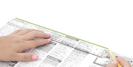 Cut a 22 by 11-inch (55.88 by 27.94-centimeter) sheet of newspaper. In most cases, all you have to do is tear a full sheet of newspaper in half. You can also use a different size of newspaper; just make sure that it is twice a long as it is wide. Avoid using the glossy ads often found in newspapers. They will not decompose as quickly as regular newspaper.