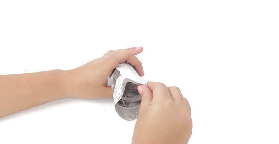 Wrap the strip around a jar. Use a small jar (ie: spice jar) for small pots, and a large jar or tin can for bigger pots. You can also use a glass or another cylindrical object instead.
