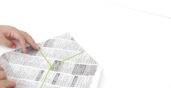 Fold the paper in half widthwise to make a square. Your newspaper will likely already have a crease in the middle; you can use this crease as a guide. For a neater finish, run your fingernail along the crease to sharpen it.