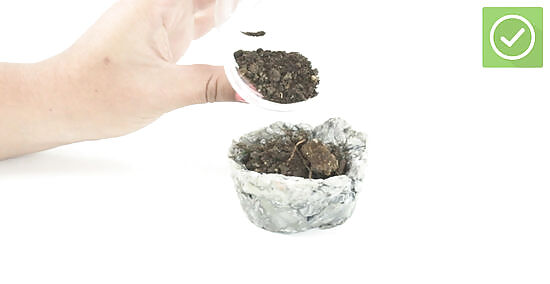 Use the pots. Once the pots are dry, take them out of the muffin tin; if you baked them, let them cool off first. Fill the pots with damp soil, then plant the seeds according to the depth on the packet. When the time comes to transfer the seeds into the garden, you can plant the entire pot into the soil.