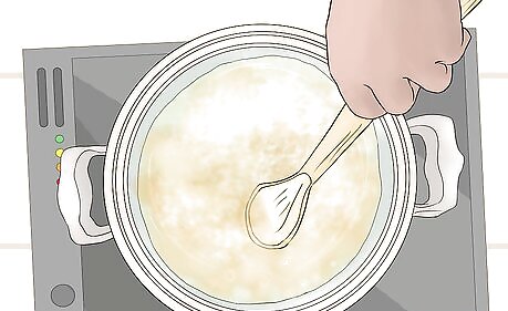 Bring the mixture to a simmer. Keep the mixture on the stove until it just begins to simmer. Once the mixture is simmering, turn off the heat. Set your mixture aside and let it cool for a few minutes.