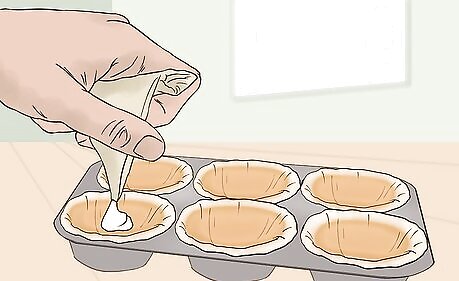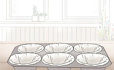Place the circles in a muffin tray. Place each circle in an individual compartment in a muffin tray. Push down the center of the circle slightly so they form small bowls. Spray down the muffin tray with a non-stick spray first.