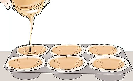 Pour the mixture into the pie crusts. Fill each of your pie crust bowls just to the brim with your pumpkin mixture. It can help to transfer the mixture to a measuring cup with a tip to make pouring easier.