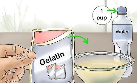 Combine the gelatin and one cup (240 mL) of water. Pour your water into a sauce pan and set it over the stove. Sprinkle the gelation over the surface of the water. Keep the stove off for now.