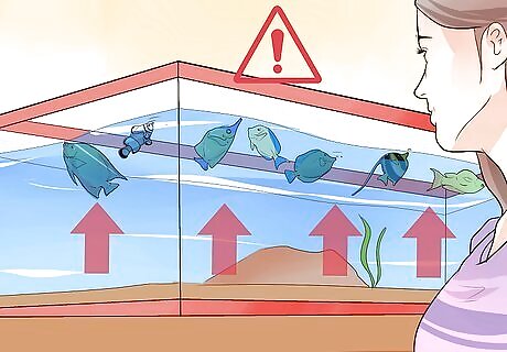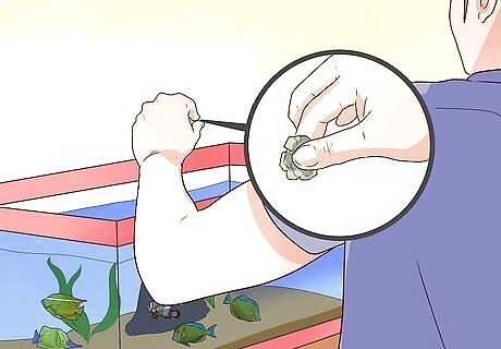 Verify that you are not overcrowding your aquarium. An overcrowded aquarium can become dirty. It can also encourage confrontation between fish. Unfortunately, there is no standard for determining when a tank is overcrowded, because space demands vary considerably with each individual species. Research your fish and consult with a professional. As a rule of thumb, a 20-gallon tank can probably accommodate three to four small fish or two medium-sized fish.