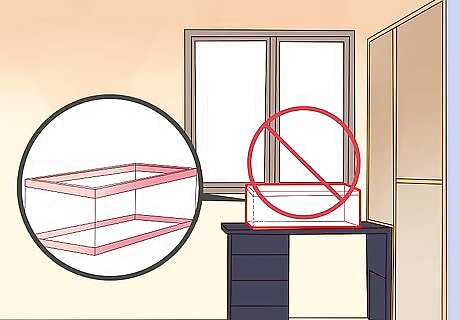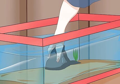 Find a safe location. A tank should be placed far away from places in the house that experience significant changes in temperature. These include areas near windows, air conditioners, radiators, and air vents. Similarly, keep the aquarium away from noise. Avoid locations near doors or in busy hallways. For your convenience, you should also pick a location is near a power plug and a water source. You probably also want sufficient space in the area to do work on the aquarium and to observe the tank.