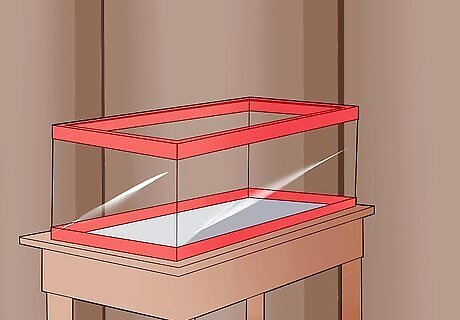 Purchase an appropriately sized tank stand. You will need to place your aquarium on something and most household items—desks and tables included—are not strong enough to accommodate a large tank. Unless you want to have a very expensive, fishy mess on your floor, you should buy a stand specifically designed for an aquarium of your size. Similarly, it is a very bad idea to leave the aquarium on the floor. This will all but inevitably lead an accident. Furthermore, you won’t have much fun looking at your fish if they’re on the ground.