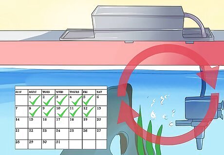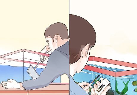 Clean the tank. Remove excess food daily and use a scrapper to clean algae off from the side of the tank. Be sure to clean the bottom of the tank with a siphon to remove waste and other unsanitary leftovers. There are a variety of specialized tools available at pet stores for performing these cleanings.