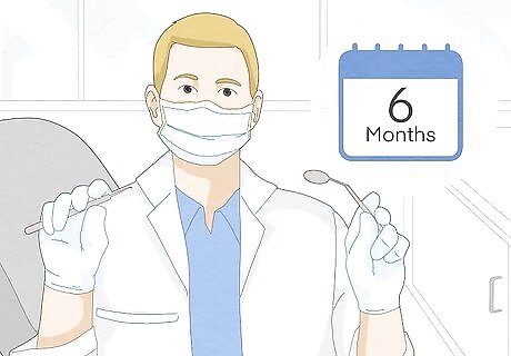 See a dentist every six months. One of the best ways to help take care of your teeth is to see your dentist regularly. Your dentist can provide a thorough cleaning, which will help your dental health. In addition, they should be able to identify warning signs of problems, such as the development of infections. Discuss what medications you're on with your dentist, as many that you might take for rheumatoid arthritis can affect your dental health. If you're on steroids and have been for a long period, you may need an extra dose before you go to the dentist. Talk to your doctor about whether that's appropriate for you. If you have trouble keeping your mouth open for very long, ask your dentist if you can schedule a couple of shorter appointments rather than one long appointment. Be sure to explain why. Most dentists will be willing to work with you.