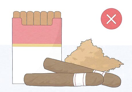 Skip tobacco products. Cigarettes, cigars, and chewing tobacco can all cause damage for your dental health. If you use tobacco, consider quitting. You'll see an improvement in not only your dental health, but your overall health as well. Tobacco products can also dry out your mouth.
