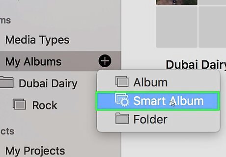 Click Smart Album. It's the second option in the drop-down menu. A drop-down menu will appear from the top of the Photos app window that will allow you to name the smart album and set some parameters to create albums automatically.