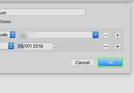 Click Ok. It's the blue button on the bottom-right corner of the Smart Album window. This will create the album and will automatically add pictures and videos based on the parameters that you set. You'll see the album appear on the left-side column in your list of albums under "My Albums". It will have the image of a gear next to it to signify it's a Smart Album.