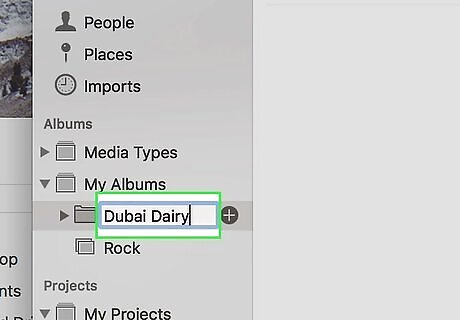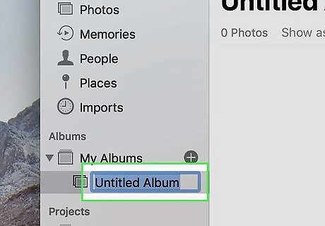 Rename the album. When you create a new album, it will be called Untitled Album by default. Click the name of the album to highlight it in blue and then type a new title for your album.