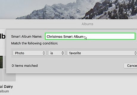 Rename the smart album. By default, the album will be titled Untitled Smart Album. Click the name in the textbox at the top of the window and enter a new name.