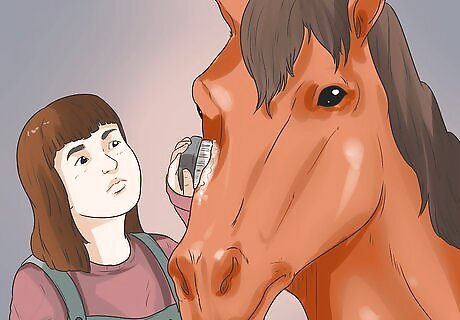 Repeat regular grooming every day. Maintaining a regular grooming routine will help prevent muscle soreness, especially in the legs. It will also help your horse stay more calm and focused during massage sessions. Don't press too lightly, as horses have much thicker skin than humans. A light brush over will not be as thorough as a vigorous grooming session.