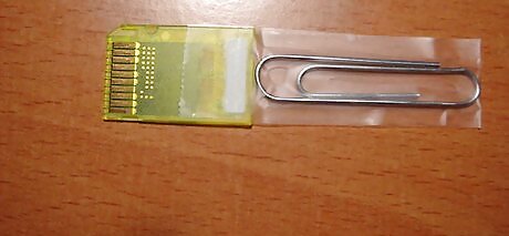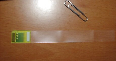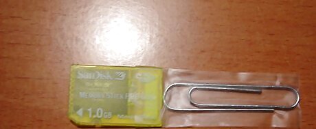 Place the paper clip end to end with the Memory Stick PRO Duo on the tape.
