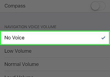 Tap No Voice. A check mark will appear to the right, and you will no longer receive audible directions when you set a route in the Maps app. You also have the option to change the volume of voice navigation to low, normal or high in this menu.