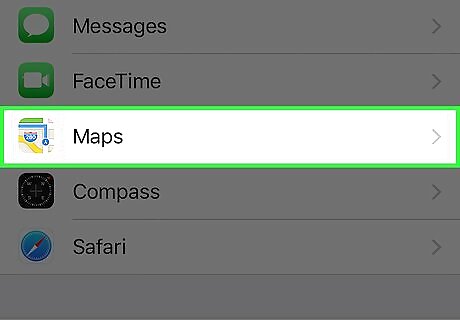 Scroll down and tap Maps. It’s in the fifth set of options on this menu screen.