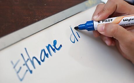 Keep a list of prefixes on-hand. These prefixes will help you name your hydrocarbons. They're based on the number of carbons in the parent chain (not altogether). For instance, CH3-CH3 would be ethane. Your professor probably won't expect you to know prefixes above 10; take note if he or she does expect it. 1: meth- 2: eth- 3: prop- 4: but- 5: pent- 6: hex- 7: hept- 8: oct- 9: non- 10: dec-