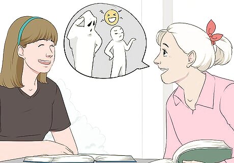 Decide to read some funny stories. Trick people by saying it'll be a scary story. For example, use: This is the scariest thing you'll ever hear...... Once upon a time, the end.This is always funny, plus it makes you realise that even the things that seem spooky will end up being just a stupid little joke over time.