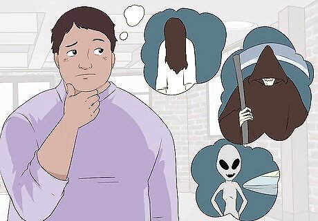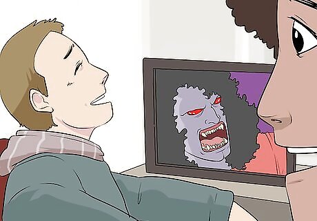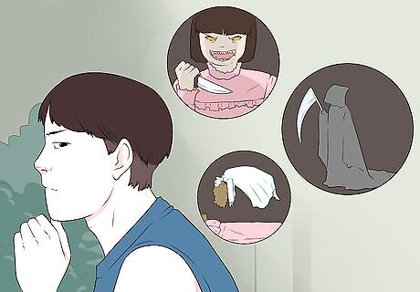 Get a certain interest in laughing at scary stories or videos. Next time someone tells you something you find extremely horrifying, laugh at it by saying stuff like: That is SO fake it's not even funny. Actually, it is funny! Don't laugh at serious issues, such as the death of people--that's cruel. If you have a YouTube Channel, post videos there of all the stories you've read and poke fun at them on specific parts by showing the viewers exactly what you mean. If you just wanna show your friends, go for it. If you prefer to poke fun at it with your friends without a video, or just in your head to keep to yourself only, go for those too!