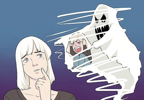 Remember the fact that scary stories are stories. Most of the time, they are merely stories. Tell some friends the story how you remember it, or search it up and show them it. It sounds pretty stupid to make someone else afraid, but the point is that you're not alone in being scared. Talk to them about it and suggest how to make it better and more realistic. With the help of your friends, a parent /older family member, or just anyone you want to do this step with, ask them how they think it can be recreated better. Add more realistic steps such as: Instead of the little girl becoming a ghost when she dies, how about she doesn't get killed and she goes to the hospital and ends up getting the police to kill the person who tried to kill her? Or: How about the person ends up saying sorry for everything they've done and goes to jail?