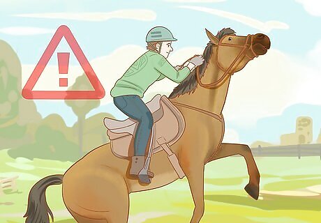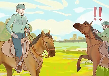 Take action. If you are around another horse who is bolting, bucking, rearing, or is just plain out flipping out, stay a good lengths away, but if possible, try to help get the horse under control before it hurts itself, another horse, or a person.