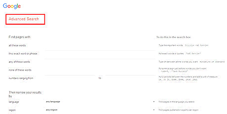 Click on the "Advanced search" from the list. Alternatively, directly go to www.google.com/advanced_search in your browser to access this feature.