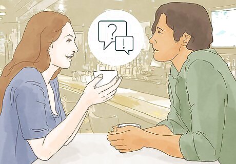 Pay attention to body language. You can communicate a great deal by simply watching how someone holds and uses their body. Observe their hands and how they are gesturing. Watch their eyes to see where you should be looking. See if their arms are crossed in a more standoffish way, or open and excited. Facial expressions are obviously a huge clue as to how someone is feeling. Are they smiling? Frowning? Do they look as if they are concentrating? About to laugh? Use your observations to guide how you respond to your partner.