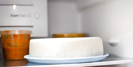 Make or buy a cake covered in white fondant or buttercream. Feel free to make your cake from scratch or buy it from a bakery, just make sure you go with a white surface to serve as a nice blank canvas for your painting. Fondant and buttercream provide the best surfaces to paint on, and you can select one or the other based on your personal tastes and available budget. Fondant is fairly expensive and can be hard to work with, but it offers a nice, smooth slate to paint on. You can start with a fondant-covered cake, or buy sheets of fondant and paint them before putting them on the cake. Buttercream is a bit cheaper and most people think it tastes better than fondant. It’s also softer than fondant, which makes harder to work with. This isn’t a big deal as long as you stay vigilant about keeping the cake chilled during the painting process.