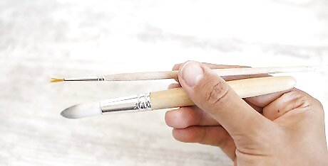 Use wide brushes to paint large spaces and small brushes to add details. Regular artist paint brushes work perfectly for this, and it helps to have an assortment of sizes on hand. It doesn't matter what the brushes are made out of as long as the bristles are high-quality, neat, and synthetic. Experiment with different brush sizes and shapes to create different effects. For example, you could try using a Japanese calligraphy brush to paint ultra-fine details onto your cake. Synthetic bristles are considered to be food-safe. Natural brushes are made from animal hair and aren't recommended. You can also work with sponges or foam applicators to get different looks.