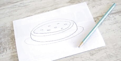Create a rough sketch of your cake design on paper. Your sketch can be as loose or as detailed as you want it to be. If you’re planning intricate details or doing lettering, it can help to create a pretty literal sketch. Otherwise, you can just sketch out a rough idea of the main elements and their placement. Go ahead and plan what colors you want to use and where they go in your design. Make detailed notes on your sketch so that you don’t get confused later on. Finalize your sketch while the cake is chilling in the fridge so you can get right to work when you take it out. If you’re working on rolled out pieces of fondant, you can sketch directly onto the surface with a food-safe pencil.