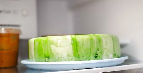 Check your cake periodically and pop it back in the fridge if it softens. If the surface no longer feels hard to the touch, or if you notice the paintbrush making an impression on the surface, you need to chill the cake for a few minutes before continuing. Chill it for 15 minutes to an hour until it firms back up. This is important, especially if you’re working with buttercream, since it softens faster than fondant. If you’re waiting for a color to dry before adding a new layer, consider chilling the cake during this time.