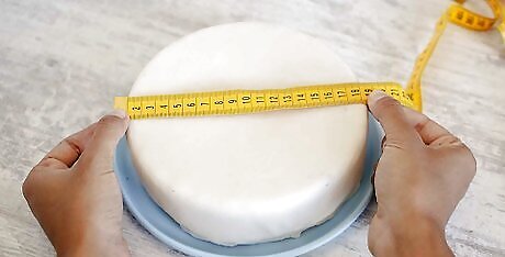 Measure the cake's surface area so you can plan your design. If you’re painting intricate details or words on your cake, it’s best to measure the surface area with a tape measure so you can be precise. If you’re freehanding a design, you can just eyeball it or hold your sketch paper up next to the cake to get an idea of how much space you have to work with.