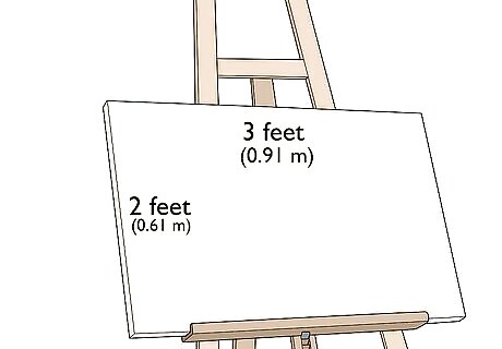 Use a 2 by 3 feet (0.61 by 0.91 m) or 3 by 4 feet (0.91 by 1.22 m) canvas. To make your oil painting in-line with Turner’s style, choose either a 2 by 3 feet (0.61 by 0.91 m) or 3 by 4 feet (0.91 by 1.22 m) canvas for your work. While these sizes were not commonly used during Turner’s period, he almost always used one of these two sizes for his oil paintings. Both of these canvas sizes are standard now and can be found at most art supply stores.