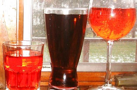 Use drinking glasses from the cupboard at home if you wish. Fill them with water tinted with food coloring.