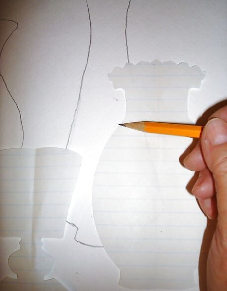 Simplify things, if you wish, by making templates of the vases. Fold a piece of lined, school paper in half lengthwise and draw one side of the vase. Cut through both layers to create a template of each vase or jar.