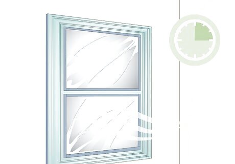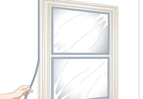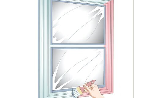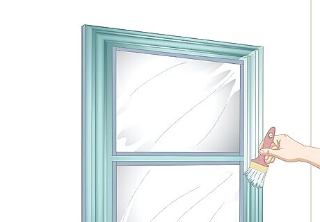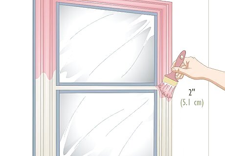 Mask off the glass and sides of the frames to protect them from the paint. Tear off a strip of blue painter's tape that's as long as the glass in the window. Press it along the bottom edge of the glass so the glass is protected but the frame is still visible. Repeat this for each side of the glass. Then, tear strips of blue painter's tape and press them on the opposite side of the frame to protect the wall. If you have a steady hand and aren't worried about getting paint on the glass or wall, you could skip this step.