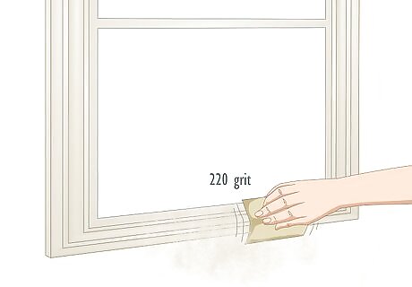 Sand the vinyl with 220-grit sandpaper. Vinyl is too smooth to simply begin painting, because it repels paint. To make the paint adhere, rub 220-grit sandpaper over the entire surface of each window frame. Keep sanding until the surface of the vinyl feels rough. You can damage the vinyl if you use a very coarse sandpaper or rub really hard.