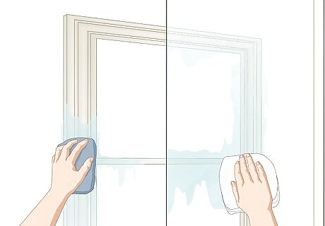 Wipe the frames with a tack cloth to remove the sanding dust. Tack cloth is a lint-free cloth that contains a slightly sticky substance. This allows you to pick up the sanding dust from the window frame instead of spread it around. You can buy tack cloth at most home improvement stores or online.
