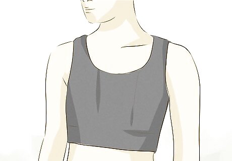 Bind your chest to create the appearance of pecs. If you have a small chest, you might be able to get away with wearing a tight-fitting sports bra. However, if you have average or large breasts, binding will be necessary to help you pass. You can purchase a binder to wear under your clothing and get the appearance of a masculine chest. Make sure that you don’t wear a binder for more than 8 hours daily. Wear a properly sized binder. Wearing a binder that is too tight restricts your breathing and can damage breast tissue . The goal of binding is not to make your chest completely flat. Instead, the aim is to imitate pectorals ("pecs"). Never use ACE bandages to bind your chest. They tend to slip down and they are also quite tight, which can restrict your breathing.Tip: You may want to look into breast reduction surgery coverage if you have very large breasts. This type of surgery might be covered under some health insurance plans, especially if your breasts are so large that they cause you back pain. There is also top surgery which many FTMs decide to get, which creates a male chest.