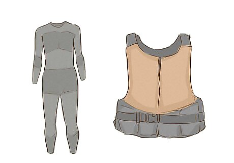 Get a special swimsuit to use at the beach or pool. Passing at the pool or at the beach can be more challenging, but it is possible with the right swimwear. Men generally wear swim trunks and no shirt at the beach or at a pool. However, you can purchase a wetsuit or swim vest to cover your chest. Or, you can simply wear a T-shirt with your swim trunks. Take precautions to bind safely. It's commonly advised to wear a binder that's one size larger than your usual wear if you go exercising or swimming. Also check whether your binder's material can safely get wet.