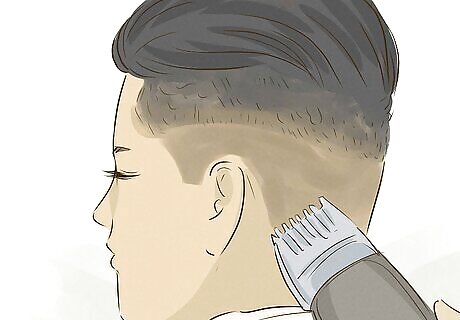Get a masculine haircut from a barber or men’s hairstylist. Since many women now sport short hair, simply having short hair won't help you pass. It’s important to get your hair cut by a barber or by someone who cuts men’s hair often. Avoid going to a hairstylist who does not cut men’s hair and who might give you a short, feminine cut. When you go to get your hair cut, tell them what style you want. Save a few pictures of haircuts you like and show these to them. Ask the barber or stylist to shave your sideburns as well. Any long hair in the sideburn area can read as female. Keep in mind that the barber or stylist will likely ask you questions about how you want your hair cut. Don’t be afraid to tell them exactly what you want and don’t allow them to talk you out of it. You have every right to get your hair cut however you want it!