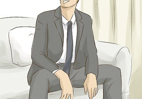 Take up space rather than trying to be unobtrusive. Women tend to make themselves look smaller, such as by crossing their legs, slouching, or keeping their arms tucked in. Do the opposite of these things to appear more masculine. Sit with your legs spread apart, sit or stand up straight and tall, and take up space with your arms. For example, if you’re standing, keep your feet shoulder-width apart, stand up straight, and let your arms hang down at your sides. If you’re sitting, place your feet flat on the ground with your knees about 12 in (30 cm) apart, and lean back with 1 or both arms resting on the back of neighboring chairs.