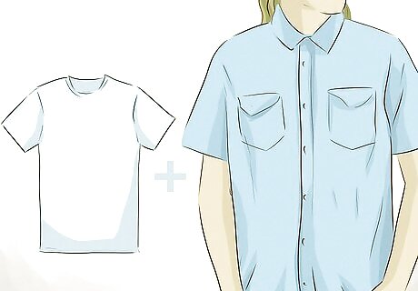 Buy tops that hide your chest. Opt for looser fitting clothing to help hide your chest. Men’s button-down shirts are good options. Steer clear of anything that clings to your body, such as silk and synthetic fabrics. Chose structured cotton and linen shirts instead. Try to get tops with designs on them. This will draw attention away from your chest and more to the print. Layering your shirts can also be helpful. Try wearing a white crew-neck t-shirt under a button-down shirt or polo shirt. Tip: If you take any of your clothing to the dry cleaners, ask for extra starch on your shirts. This will help to make them look and feel more structured, which can help to hide any curves. Hoodies can be a lifesaver. They're androgynous, baggy, and hide your chest well. Go with a black hoodie when possible, as it will mask your chest even more.